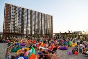 На территории жилого комплекса находится парк "Флагманский" на 4га, оборудованный детскими площадками, фонтаном с подсветкой, арт-объектами, дог-парком, памп-треком, пергола для проведения мероприятий, летний кинотеатр, территория "безмятежности" с перголами, шезлонгами и гамаками.