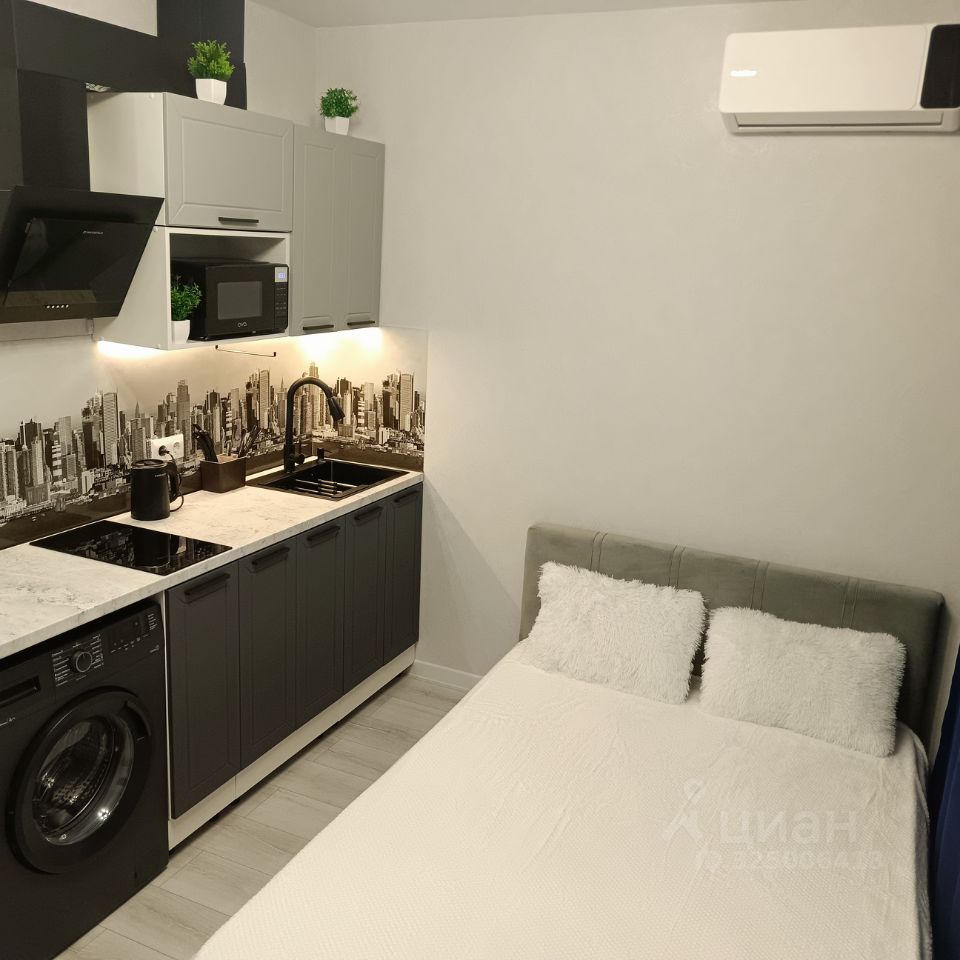 Квартира-студия общей площадью 26.6 кв.м.(в коммунальных платежах считается 20.5 кв.м!)оборудована всем необходимым: wi-fi, кухня, микроволновка, чайник, посуда, Smart телевизор с подключением к интернет, двухспальная кровать 140/200, гардероб зона, сплит-система, стиральная машина, двухкамерный холодильник, утюг с гладильной, сушилка.