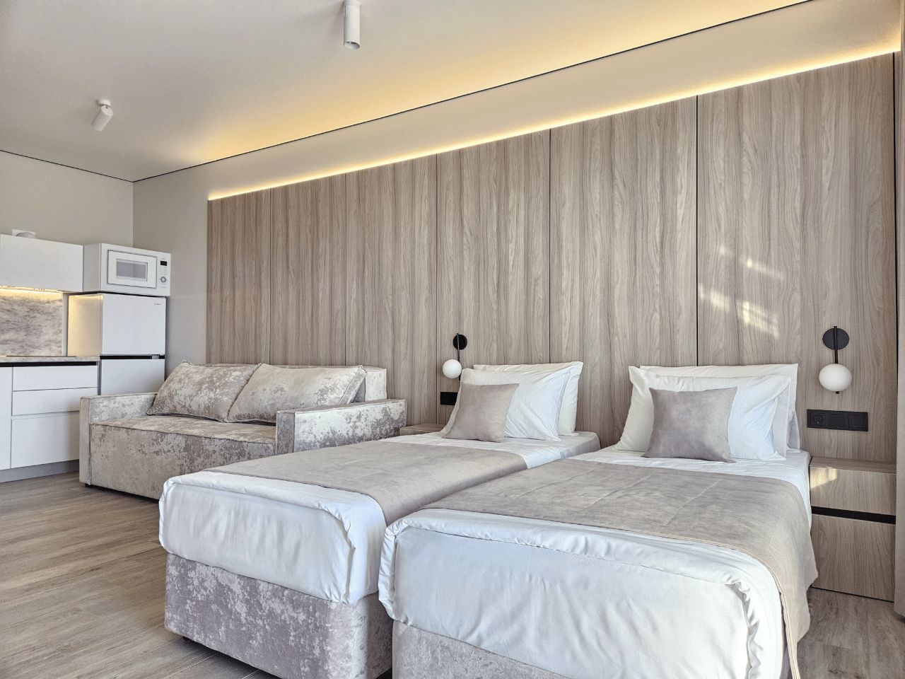 В распоряжении гостей 17 комнат с дизайнерским современным ремонтом. Все комнаты оснащены всем необходимым для удобства: удобное спальное место, во всех номерах есть диван, кухня полностью оснащена всей необходимой техникой и посудой, в санузле установлено: зеркало с бесконтактным сенсором, есть фен, набор полотенец, туалетные принадлежности. Оснащение: кондиционер, большой телевизор со SMART TV, Wi-Fi, сейф. Акцентное и отраженное освещение. Пол с подогревом в холодное время года. Датчики противопожарной системы