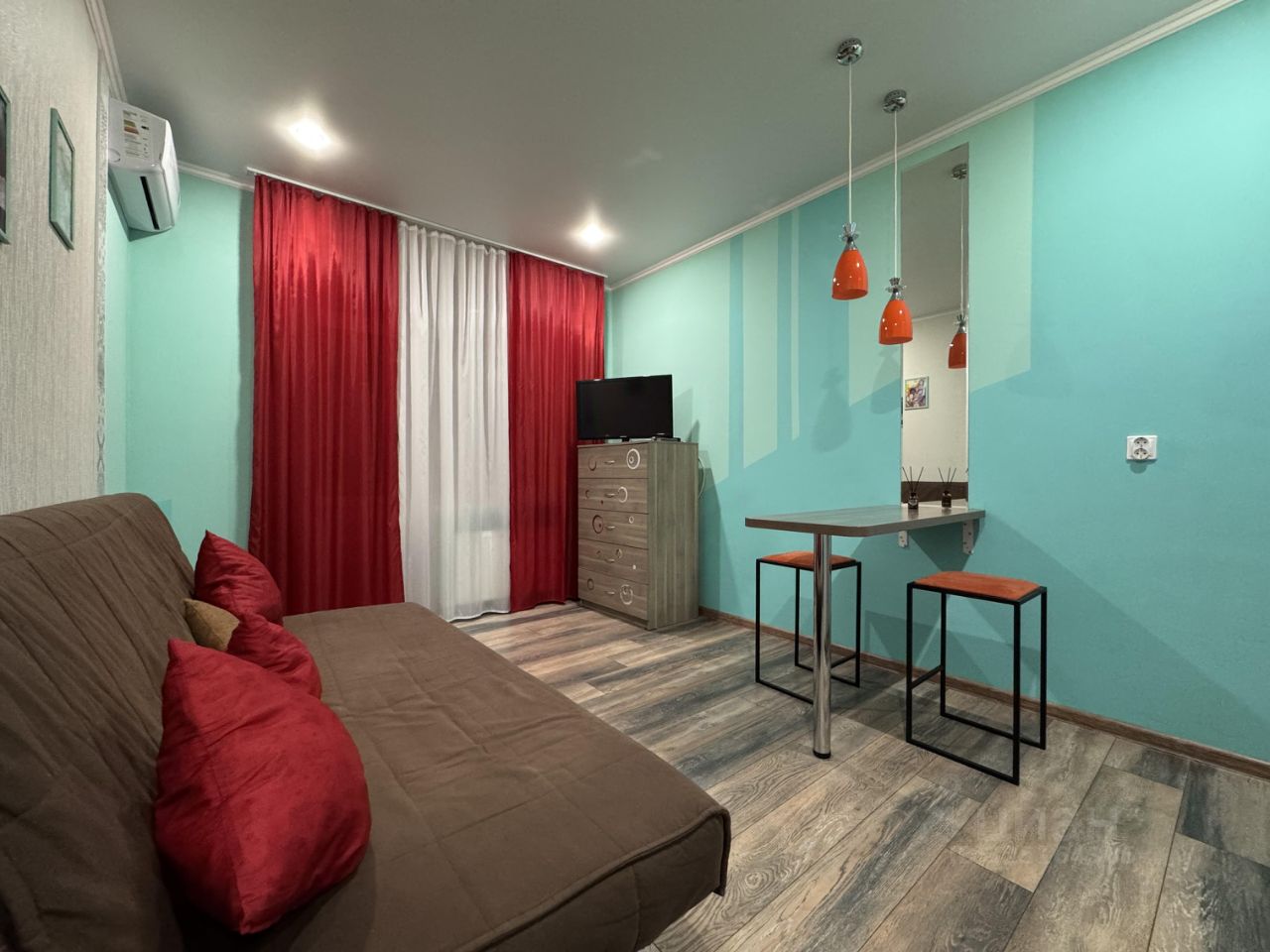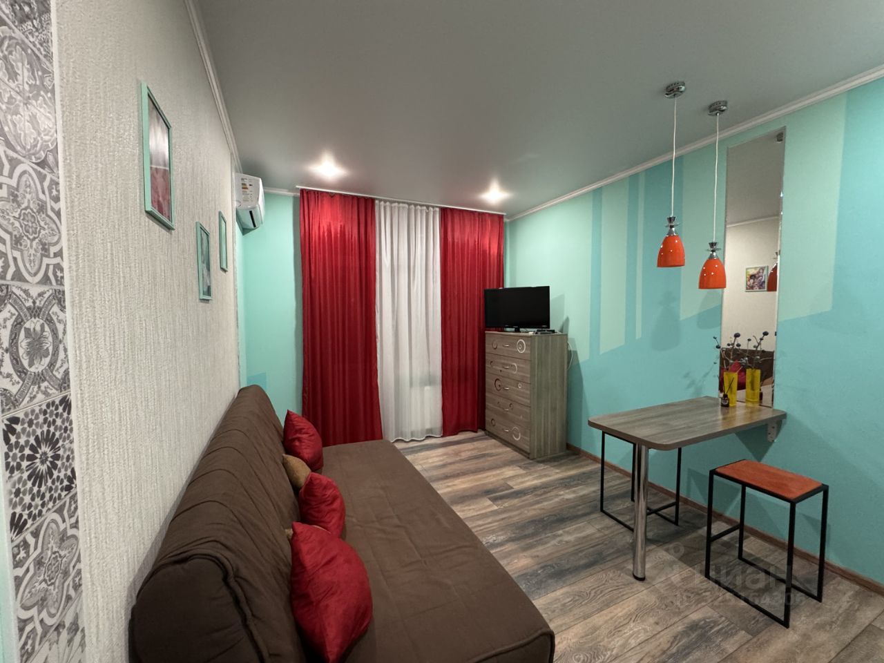 В квартире сделан дизайнерский ремонт, который придаст вашему проживанию особый комфорт. Пространство оформлено со вкусом и любовью к деталям. В студии есть вся необходимая мебель как на кухне, так и в комнате. Для вашего удобства установлены кондиционер, телевизор, холодильник и стиральная машина. Санузел совмещенный, оборудован ванной, что позволит расслабиться после трудового дня.