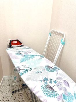 Квартира оснащена всем необходимым для комфортного проживания: есть холодильник, стиральная машина, телевизор с кабельным/цифровым ТВ. В комнате установлена современная двуспальная кровать и вместительный шкаф для хранения вещей, гладильная доска, утюг, кондиционер.