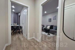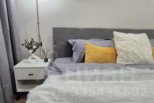 • Дизайн и атмосфера: Интерьер квартиры создан в гармонии спокойных современных оттенков — серого, бежевого и приглушённо-зелёного. Элементы декора, такие как картины с растительными мотивами и мягкое освещение-торшер наполняют пространство атмосферой уюта и расслабления.