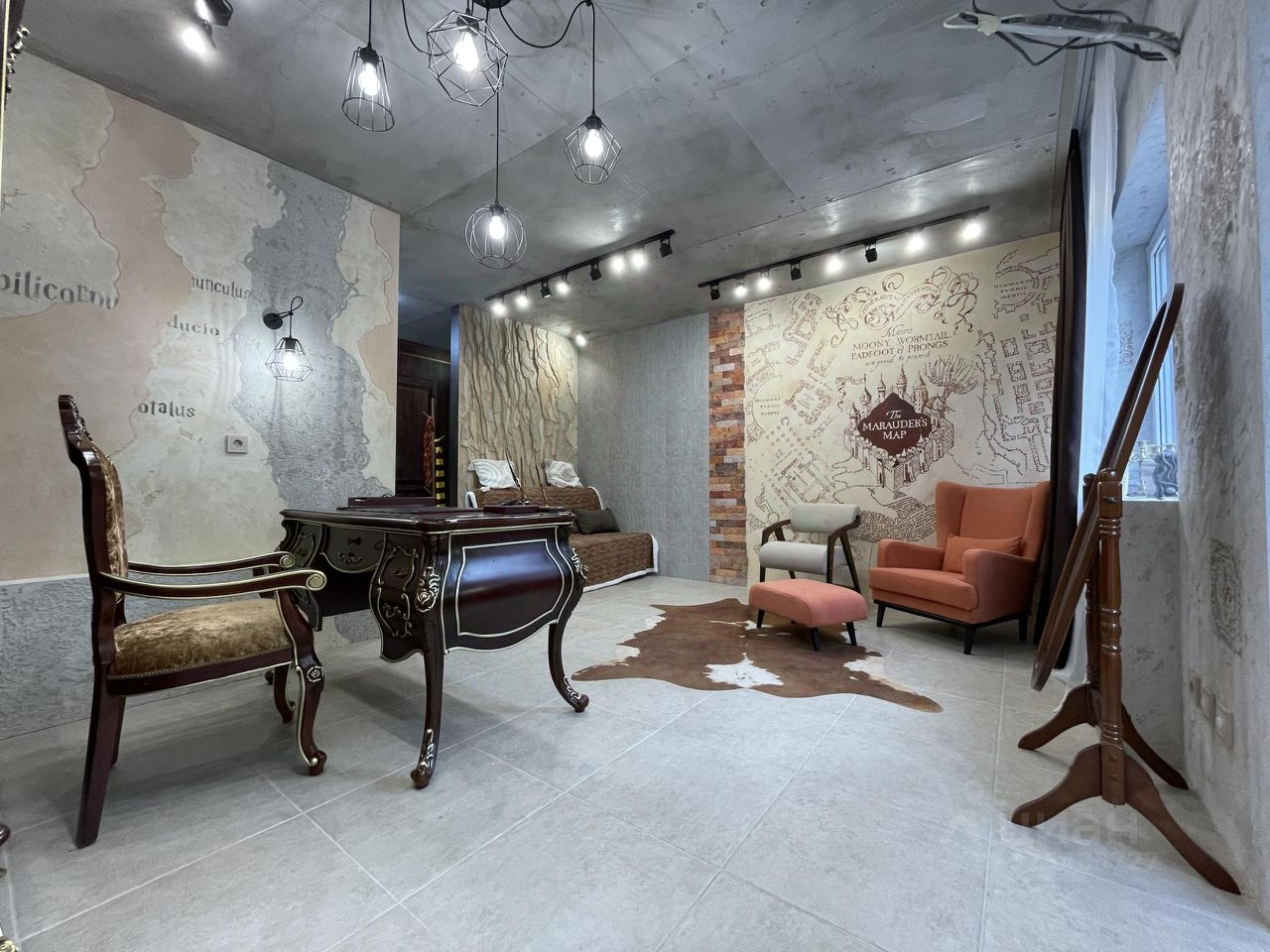 Студия в стиле Хогвартс, без кухни, есть ванная. Двуспальный диван, ТВ отсутствует.