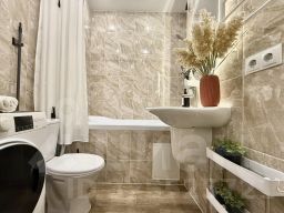 В квартире: 4 спальных места: 2+2 (двуспальная кровать с ортопедическим матрасом и двуспальный диван-кровать с ортопедическим матрасом), высокоскоростной безлимитный Wi-FI и смарт ТВ; полноценная кухня с зоной готовки и бытовой техникой (холодильник, варочная панель, духовой шкаф, СВЧ-печь, электрический чайник); необходимые мелочи для жизни: стиральная машина, сплит-система фен, утюг, гладильная доска, сушилка, а так же посуда и столовые приборы; белоснежное хлопковое постельное белье и полотенца.