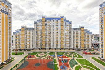 - Во двор (3 этаж) с огромной детской, спортивной площадками, тренажерами и фонтаном.