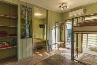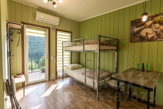Удобная двуспальная кровать с прикроватной тумбочкой, телевизором. Двух ярусная кровать подходит как для взрослых, так и для детей. Ванная комната оснащена всем необходимым (душем. Санузлом, раковиной с зеркалом, феном, туалетными принадлежностями). В апартаментах имеется: удобная двух спальная кровать с прикроватными тумбочками, телевизором, шкафом, гладильной доской и утюгом. В номере расположена кухня (варочная поверхность на две конфорки, холодильник, раковина и полный комплект посуды). В Номере есть все, что нужно для комфортного проживания.
