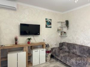 диван-кровать, раскладной диван, большой шкаф, кухонный гарнитур, холодильник, варочная панель, микроволновка, стиральная машина, сплит-система, телевизор, wi-fi роутер.
