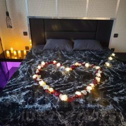 По желанию гостя можно сделать праздничное оформление: лепестки роз на кровати, в джакузи, свечи, шары гелиевые, фруктовая корзина, встреча курьера, покупка цветов, фруктов, алкоголя.