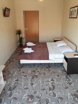 Двухместный, двухкомнатный, комфортный номер. Оборудован всем необходимым для комфортного отдыха и проживания. Возможно установка доп.места (платно +500руб/ночь). Номер находится на первом этаже. Номер укомплектован кондиционером, смарт TV 43", цифровое тв, Wi-Fi, холодильник, эл.чайник, посуда, фен, сейф. Санузел с душевой кабиной. На входе перед номером столик с креслами. Курение в номере строго запрещено (штраф и выселение)! На территории отеля "Центральный" расположен большой стационарный двухуровневый бассейн с подогревом на 100 тонн чистейшей воды, детская площадка, большой батут, гамаки, качели, зона барбекю, зона отдыха, зона барбекю. Парковка на территории и за территорией. Отель находится в 4х минутах ходьбы от моря. В шаговой доступности магазины, кафе, рестораны, аптека, рынок, парк аттракционов, картинг. Возможно проживание с питомцами, по согласованию (платно +500руб/ночь).