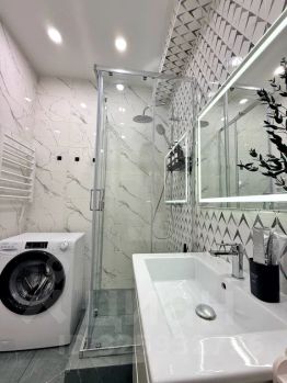 Свежие стены, современная сантехника, продуманное освещение и тв с удобным креплением.