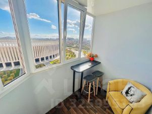 Наш отел "Панорама-Парк" предлагает однокомнатный номер с балконом Комфорт+ со всеми удобствами, расположенный на 15 этаже, с видом на Озон Арену и парк Краснодар.