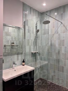 Санузел с качественной сантехникой и душевой зоной с тропическим душем