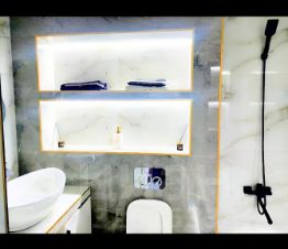 Санузел совмещенный, выполнен в современном стиле с качественной сантехникой и стиральной машиной. Лоджия объединила с комнатной, что добавляет дополнительное пространство и комфорт.