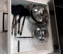 На кухне варочная панель, микроволновка, духовой шкаф, посудомоечная машина, чайник и новая посуда.