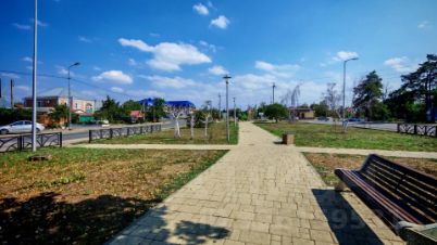 Тихий зелёный двор с детской площадкой.