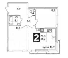 Арт. 129027189 Сдается 2-к квартира в ЖК "Самолет"
