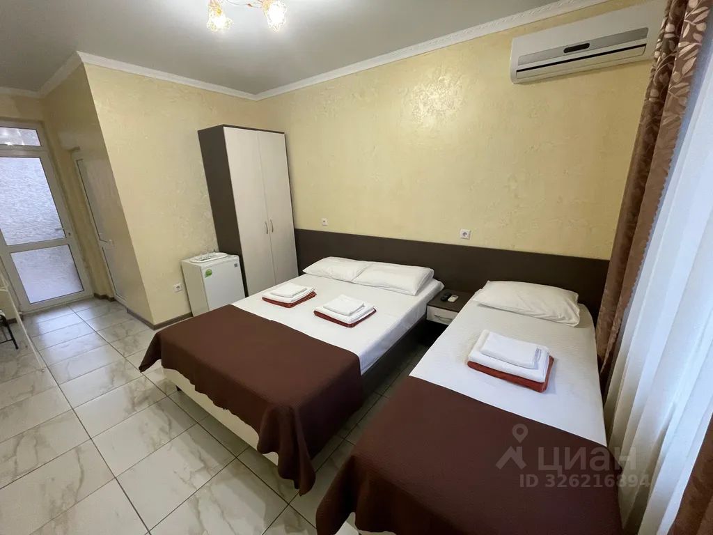 За 5760 RUB в день сдаётся 1-комн. общей площадью 20 кв.м. Комната расположена на 1 этаже 3-этажного дома по адресу Россия, Сукко, Солнечная улица, 13. Необходим залог.