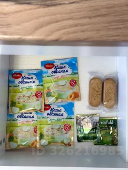 Так же для вас чай, каша быстрого приготовления, кофе, сахар, соль, печенье.