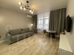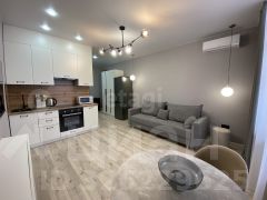 Студия площадью 27 кв. м в ЖК "Достояние" с качественным дизайнерским ремонтом и панорамным остеклением. Планировка продумана для комфортного проживания: современная кухня оснащена всей необходимой техникой, а гостиная зона оборудована раскладным диваном и телевизором. Для хранения вещей предусмотрены встроенные шкафы. Объект подходит для проживания одного-двух человек или пары с ребенком. Жилой комплекс обладает развитой собственной инфраструктурой: на территории расположены круглосуточные аптека и магазин "7 дней", в шаговой доступности — супермаркеты "Магнит" и "Пятерочка", торговые центры, кафе и сервисы доставки Ozon и Wildberries. Во дворе обустроены детские площадки и зоны для барбекю, а также имеется достаточное количество парковочных мест. В пешей доступности находятся два детских сада и школа. Транспортная доступность обеспечивает быстрый выезд на основные магистрали. Арендная ставка составляет 25 000 рублей в месяц плюс коммунальные платежи, требуется залог в размере одной месячной платы.