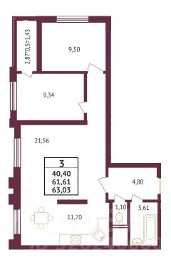 63,5 м²