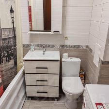 В квартире сделан ремонт с 2019г. На кухне площадью 10.5 кв. м есть вся необходимая мебель и техника: холодильник, посудомоечная машина и кондиционер. В комнате также имеется мебель, идеально подходящая для комфортного проживания. Ванная комната оборудована ванной, а также стиральной машиной. Для вашего удобства в квартире проведен интернет и установлен телевизор, услуга интернета и телефювидения входит в стоимость аренды квартиры.