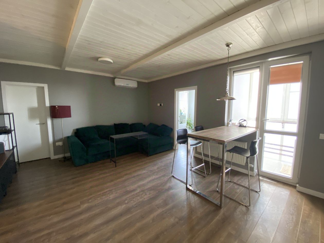 Квартира расположена на 7-ом этаже 18-этажного монолитного дома 2017 года постройки. Совмещенный санузел с душевой выложен кафелем, большая гостиная-столовая с встроенной кухонной мебелью и бытовой техникой, на полу ламинат. В спальной комнате установлена двуспальная кровать. Третья комната выделена под кабинет. Две витражные лоджии с видом во двор. Теплый пол на кухне и в ванной, есть гаджеты умного дома. Жилье оснащено необходимой бытовой техникой: сплит-система, посудомоечная машина, стиральная машина-автомат, двухкамерный холодильник, ТВ-панель.