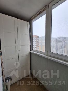 Балкон из комнаты, остеклен. На полу ламинат. Установлен шкаф для хранения бытового оборудования и расходников.