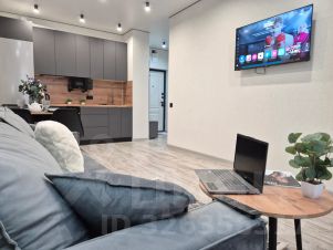 Просторная кухня-гостиная с уютным диваном, телевизор со Смарт-ТВ и Wi-Fi., идеально подходящая для отдыха после насыщенного дня.