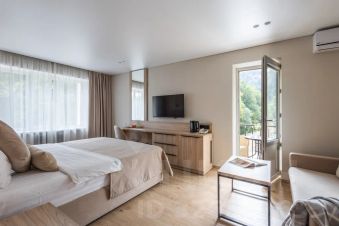 Двухкомнатный номер призван удовлетворить даже самых взыскательных гостей. Мыпредлагаем нетолько просторное проживание, ноивозможность насладиться свежим горным воздухом ипрекрасными видами. Внутри вынайдете элегантно обставленные комнаты: спальню сдвуспальной кроватью кроватью испальню с двумя односпальными кроватями. В номере имеется балкон с дизайнерской мебелью из ротанга. Площадь номеров от 21 м2 до 34 м2.