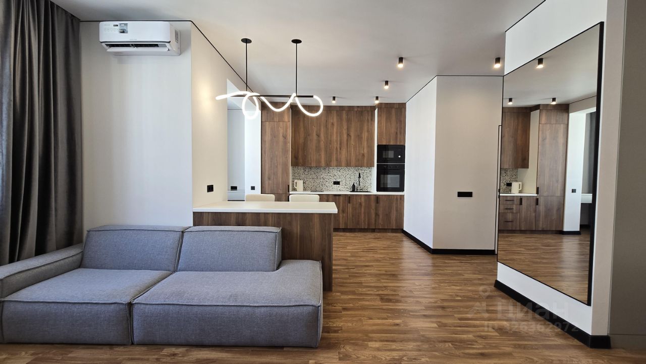 Квартира полностью обустроена, из техники: стиральная машина, микроволновка, духовка, холодильник, телевизор Хiаоmi со смарт тв 55 дюймов, кондиционер, посудомойка.