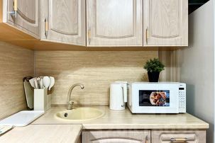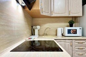 Наши гости могут готовить на полностью оборудованной кухне с бытовой техникой и посудой. Есть плита ,электрический чайник, микроволновая печь и холодильник.