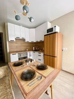В квартире выполнен дизайнерский ремонт, который создает современную и комфортную атмосферу. В наличии вся необходимая мебель как на кухне, так и в комнате. Вы найдете холодильник, стиральную машину и телевизор, поэтому можно сразу въезжать и наслаждаться комфортом. Санузел совмещенный, оборудован ванной, где можно расслабиться после долгого дня. Квартира также имеет балкон, что добавляет дополнительное пространство и является отличным местом для отдыха.