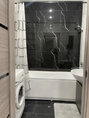 В квартире сделан дизайнерский ремонт, который придаёт ей стиль и уют. Здесь есть всё необходимое для комфортной жизни: холодильник, телевизор и стиральная машина. В каждой комнате и на кухне предусмотрена удобная мебель, так что вам не придётся беспокоиться о её приобретении. Просторная кухня площадью 10.7 кв. м. станет отличным местом для семейных обедов и уютных вечеров. Ванная комната оснащена современной ванной, поэтому вы сможете расслабиться после трудового дня.