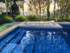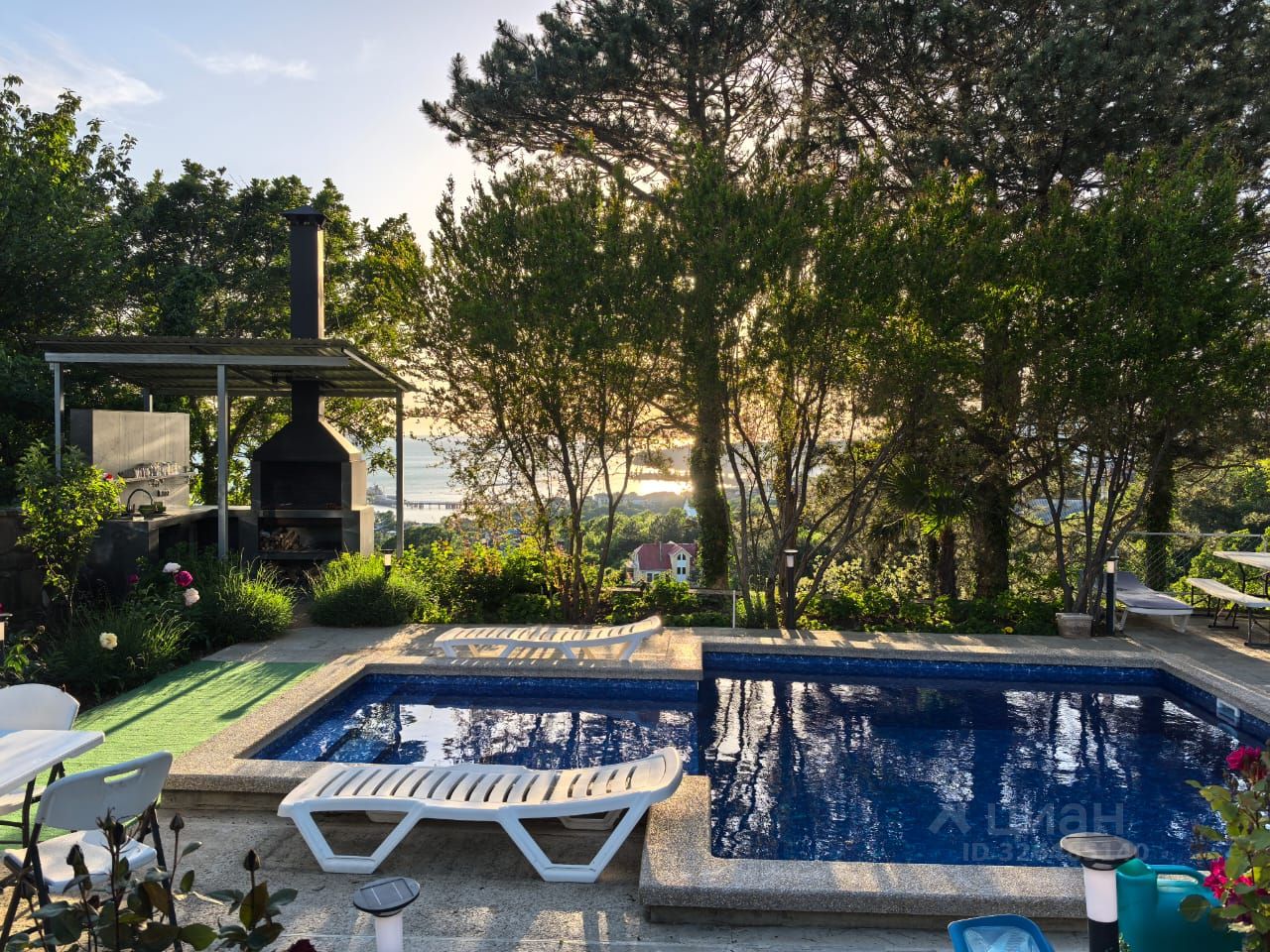 . Новый бассейн с подогревом +28+32С размером 4,5+6,5м с зоной купания для детей глубиной 0.85м и взрослых 1,8м, оборудован противотоком для плавания и гидромассажом. Вокруг бассейна находится столики, шезлонги для комфортного отдыха. Летняя кухня, мангальная зона.