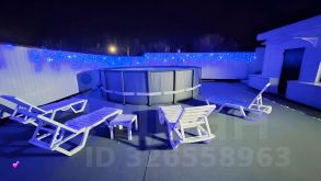 - Зона отдыха с бассейном (21,000 л), шезлонгами, беседкой и качелями