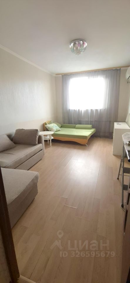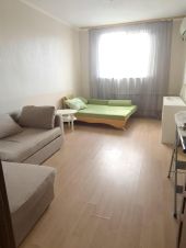 В квартире одна большая комната, где есть диван угловой для отдыха и диван кровать 2х спальный.