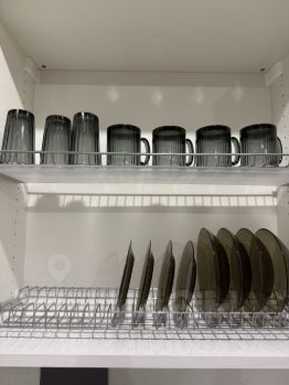 - Кухня( стиральная машина, холодильник BOSH, микроволновая печь, духовой шкаф, чайник, салатницы, посуда на 4 персоны, столовые приборы, и кухонный инвентарь.)