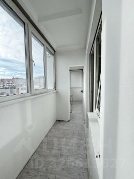 Длинный ленточный балкон с соединенным выходом в комнату и на кухню.