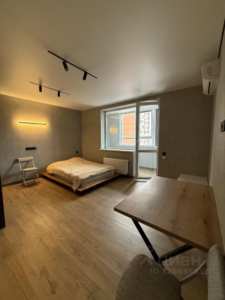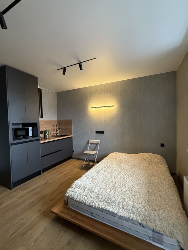 Сдаётся уютная студия в новом доме 2022 года постройки. Квартира расположена на последнем, девятом этаже монолитного дома. Общая площадь составляет 33 кв. м, а высота потолков — 2.7 метра, что создаёт ощущение простора. Окна выходят во двор, поэтому в квартире всегда тихо и спокойно.