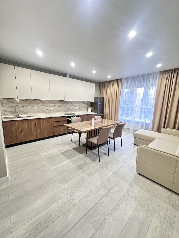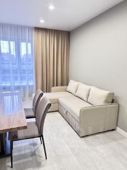 Квартира с евроремонтом, полностью готова к проживанию. Здесь есть все необходимое: современная мебель на кухне и в комнате, столовая посуда и посуда для приготовления пищи, постельное белье, а также вся необходимая техника — кондиционер, холодильник, посудомоечная машина, телевизор и стиральная машина, робот-пылесос.