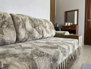 такое зонирование удобно, если вы отдыхаете с детьми или приезжаете большой семьёй. В одной комнате расположена двуспальная кровать + односпальная/ кресло-кровать, во второй — отдельные спальные места или диван; при необходимости возможно размещение до шести человек под запрос.