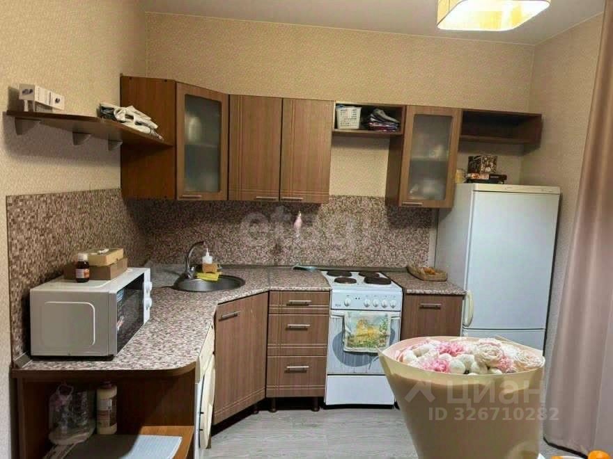 В квартире есть всё необходимое, в комнате имеется диван и кровать. Кухня с мебелью, холодильник, стиральная машина. В коридоре шкаф купе.