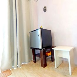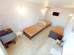 В данном трёхместном номере есть всё необходимое. Можно попить чай или совершить лёгкий перекус, имеется небольшой холодильник, в котором можно охлаждать воду, мороженое или фрукты.