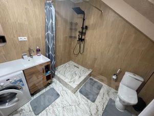 В каждом есть свой санузел, телевизор, фен, утюг, гладильная доска, холодильник, вайфай, собственная кухня, теплые полы.