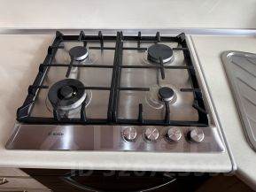 - бытовая техника (большой холодильник, посудомоечная машина, духовой шкаф, микроволновая печь, чайник, стиральная машина, утюг, фен, телевизор);