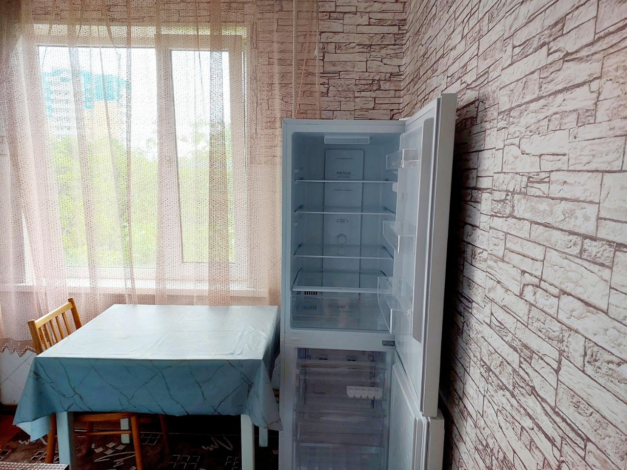 В квартире сделан косметический ремонт, она полностью меблирована. В комнате есть всё необходимое для жизни, включая кондиционер, холодильник, телевизор и стиральную машину.