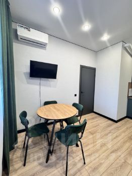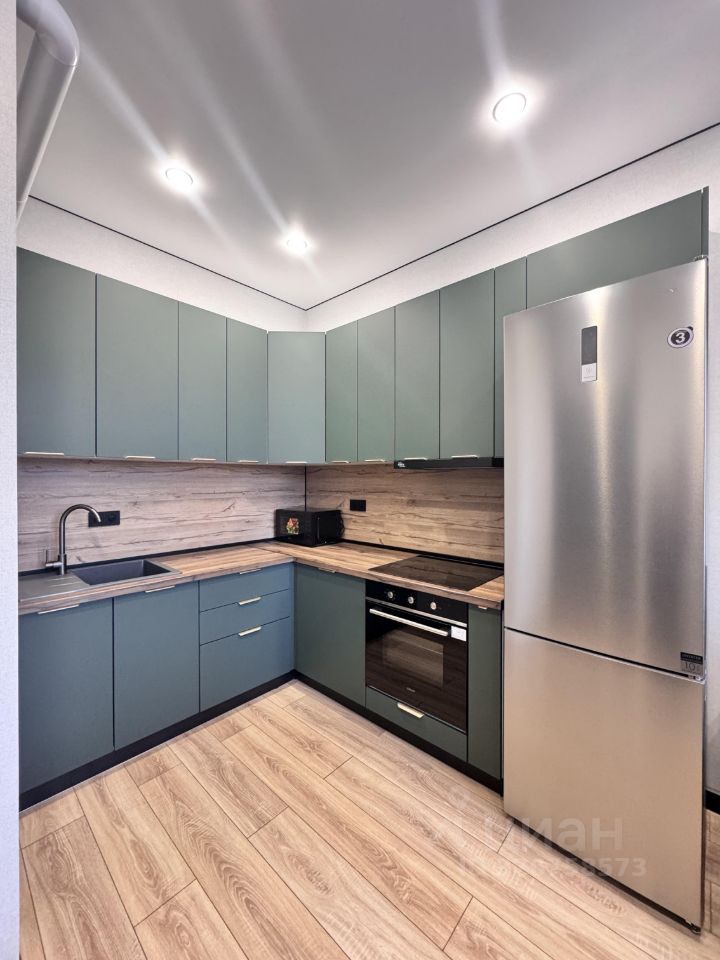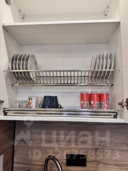 Кухня просторная, площадью 15 м², оснащена всей необходимой техникой: холодильник, плита, микроволновая печь, духовой шкаф. Есть посуда. На кухне установлен кондиционер и телевизор с кабельным/цифровым ТВ. Из мебели — шкафы и удобный диван.