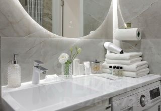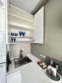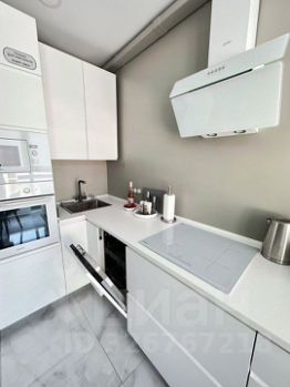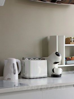 В кухне установлены: индукционная панель, встроенный холодильник, чайник, тостер, капсульная кофемашина, духовой шкаф, микроволновая печь, посудомоечная машина и фильтр для очистки воды, полный набор посуды.