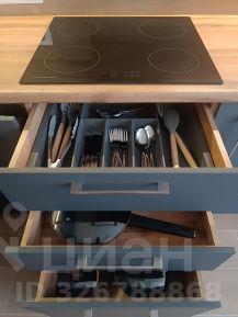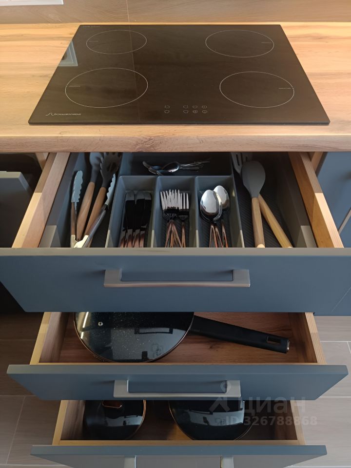 имеется все необходимое для жизни: посуда, вилки-ложки. чайник, встроенная техника(СВЧ, духовной шкаф, посудомойка, индуционная плита и посуда к ней) . утюг, гладилка, сушка для белья.