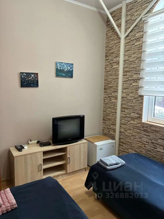 Небольшая комната для экономных гостей. Все необходимое для однократной ночевки или длительного проживания: холодильник, телевизор, кондиционер, современные кровати с новыми матрасами и качественным постельным бельём- у нас спать хорошо! Рядом с номером -общая кухня со всем необходимым для приготовления или разогрева пищи, столовая с диваном и большим телевизором и камином, для желающих- выход на мангальную зону ( жарим шашлык-башлык) или на веранду для курения. В 100 метрах- курортный парк и аллея 1000 сосен, магазины, кафе, остановки.